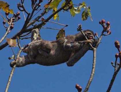 A few squirrel monkeys were spotted, as well as many sloths. One mother was busy feeding on kapok flowers and buds, while her tiny baby clung to her belly. She put on quite a show and was not afraid to show off her offspring. Many other critters were interested in these flowers as well, including bees, parakeets, and flycatchers. Returning to the Delfin II, the dolphins were still surrounding the ship and continued to amaze.