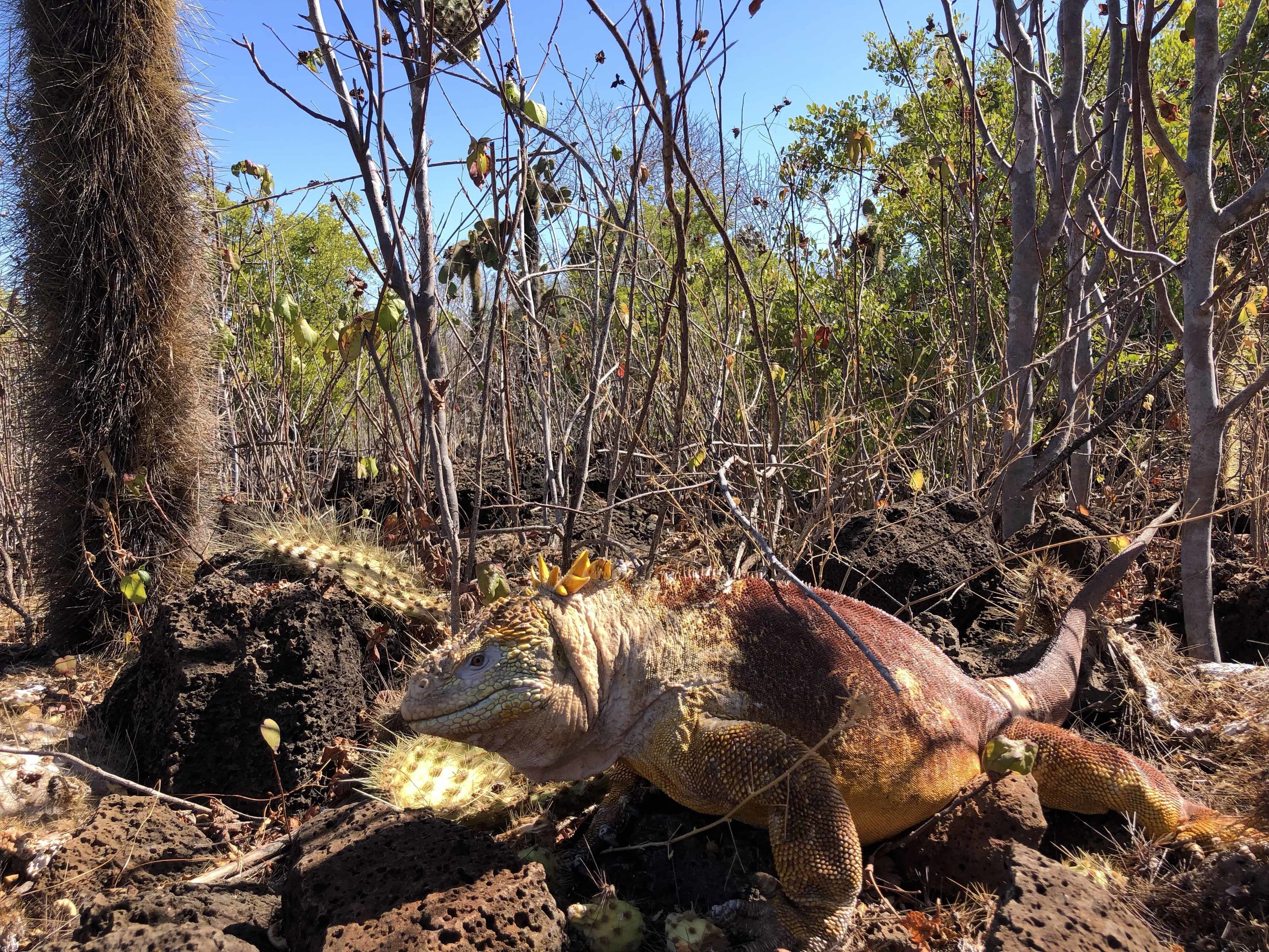 Dragon Hill is a tuff cone, which means compacted and pulverized ash. During our hike in this dramatic landscape we saw lots of endemic and native plants species, plus this place is the home and nesting site of many land iguanas (Conolophus subcristatus). We spotted a few of these individuals and learned about them and their different behaviors. At this moment, it’s not the nesting season, but when the time arrives we are going to find females running away from males, due to their aggressive behavior. A few months later the females will be searching for the best site to build their nest.