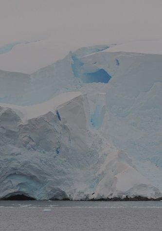 We bade farewell last night to the Black Nunataks, the stark blackness of the rock, the multi-hued whiteness of the snow and ice, and to the very last of that extraordinary color that the continent offers—the pure, monochromatic blue so captivating that we have taken myriad photographs of it in the cracks and crevices of both bergs and glaciers. Surely no one has been untouched by the astonishing depth of that color.