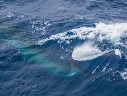 While this expanse of blue can appear as somewhat desolate, we fail to see beyond the skin of the surface we pass over. In fact the Southern Ocean is far from a desert and is teeming with life, it mostly just lies below the limit of our gaze. Fish, krill, and plankton exist in relatively unknown and unexplored numbers, here more than anywhere else on the planet. There are however organisms that transit through the planes we cannot, feeding at depth and coming up to breathe, allowing us the merest glimpses into their lives. Reminding us that we are far from alone in these waters we pass by dozens of fin whales consuming food at the surface by lunging forward and gaping mouths wide open. Rorqual pleats along their throats enables an accordion-like expansion that allows for massive quantities of water and food to be brought into the now ballooned out animal. The undesirable sea water is then pushed out through a fibrous adaption called a baleen that traps all the desired food to be scraped up by the tongue and consumed. These cetaceans are the second largest in the world and also the fastest, able to easily out maneuver and outrun our vessel if they so choose. As we leave them to their feeding and watch their spouts slowly disappear behind us, puffs of vapor hanging into the air, it’s almost as if they were never there. Luckily we have our memories and when the rest of them finally catch up with us, hopefully they cross this expanse of ocean as easily as we have.