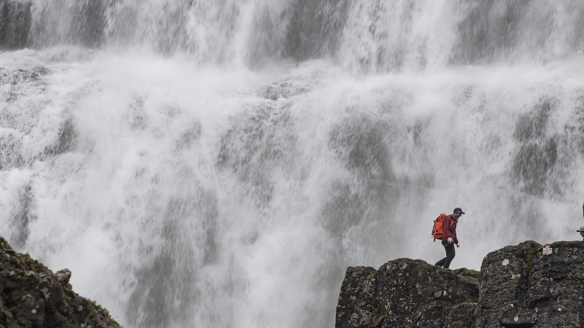 There's something invigorating about being near a waterfall. I read once that the reason people feel that way is because as the water falls and strikes rocks and other surfaces, oxygen molecules are released, adding more oxygen into the air around the falls. Maybe so, but judging by the vocal expressions of the guests viewing from the deck of our ship, those molecules must have traveled far to reach us on the National Geographic Explorer. Dynjandi Waterfall may not be the biggest in Iceland, and it may not have the most water coming over its precipice, however, it certainly is one of the prettiest. Dynjandi, is actually a series of falls, one very large and wide, and three or four smaller ones that form a torrent of rushing water falling about 300 meters from top to bottom. As the water falls from one fall to the next, it releases an encompassing mist that makes the surrounding landscape a garden of lush green moss and grasses and gives life to the many wildflowers that you can find there. The trail to the top of the falls is a pavement of mud and slippery uneven rocks, but the frequent stops to view the falls along the way make the hike seem less strenuous, as we trudged our way from one photo op to the next. Time passed so quickly as we wandered up and down the circuitous route until finally, we were heralded back to the ship. A good morning had by all, we were ready for the afternoon's destination, a small island called Vigur.