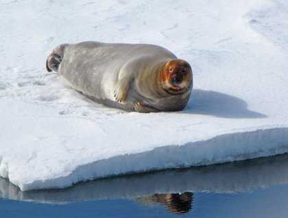 There was a freedom about the day, a sense of peace. There was no plan and no specific goal. We stared far off or examined the details of what was nearby. Sunshine glistened on the midnight-blue sea and reflected from diamond-like crystals on the ice floes in the drifting pack. We shifted the giant puzzle pieces mentally, matching polar bear tracks on one with those on another that had fractured and rotated away. Pressure ridges bisecting one surely once were connected to those found on a different platter. Ringed seals littered the largest plates, each poised at the lip of a breathing hole, set for a quick escape. Bulky bearded seals seemed to prefer to lie along the edges of smaller floes from which they could easily roll. Even a walrus mother and her very tiny offspring seemed content to simply drift with the currents and wind.