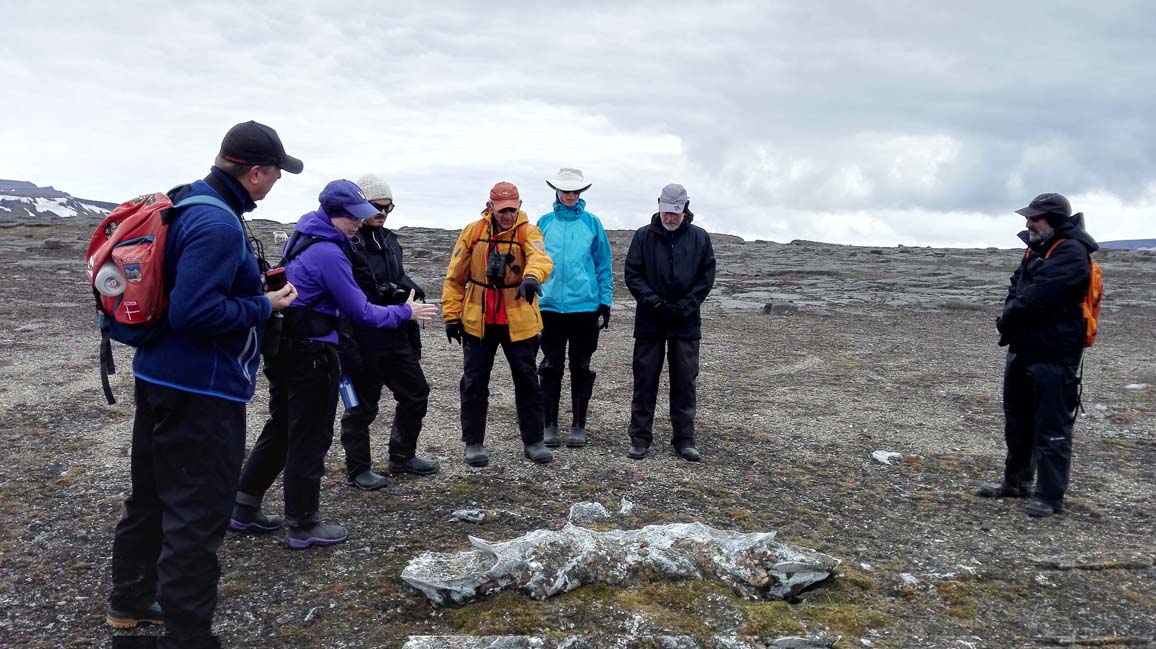 Unlike yesterday, this morning, we did not wake up to the loud sounds of crushing ice, even though we did pass some sea ice during morning hours in Freemanssundet. We started off our day with a lovely lecture on glaciers from Ezra, one of our naturalists. Suddenly, we received an announcement from the expedition leader, Stefano, that a haul-out of almost 200 walruses had been spotted. Swiftly, all of the Zodiacs were lowered, and we enjoyed a delightful short Zodiac exploration around Kapp Lee. Opposed to yesterday’s exploration between ice floes, where we, with one exception, only saw females, we were only able to spot male walruses on land and in the surrounding water. Some of them were quite curious, and we were able to admire their large size and spectacular tusks. It is incredible that animals of that size sustain themselves by only eating small mussels and remain so incredibly elegant while swimming! After eating wonderful Swedish meatballs and taking an afternoon nap, we headed back out. It was time for our first longer hike in the Arctic wilderness! And what an afternoon it was! We landed on a beach that was pink with flowering purple saxifrages. Yet, howling wind reminded us that we are indeed still in the harsh Arctic. But the wind accompanied by occasional snow and rainfall did not disturb our exploration. Looking at the remains of old fox traps, one can’t help but wonder how people that landed here centuries ago must have felt when facing this barren landscape when they first arrived. In the surrounding ponds we saw lots of birds - red phalaropes, whose females are the showy and colourful ones, majestic-looking king eiders, and long-tailed ducks. In the distance, we spotted cute and curious Svalbard reindeers. They seemed to have decided to lie down to avoid this windy weather to the best of their abilities, and curling up on the ground made them look like fluffy piles of snow. During the rest of our hike, we enjoyed the vast openness of the Arctic tundra and the feeling of being just a small human amongst this majestic landscape. After a slightly bumpy Zodiac ride, we were back in the warmth and comfort of the ship. The evening ended with an interesting recap, a delicious dinner, and a well-deserved break, after which
