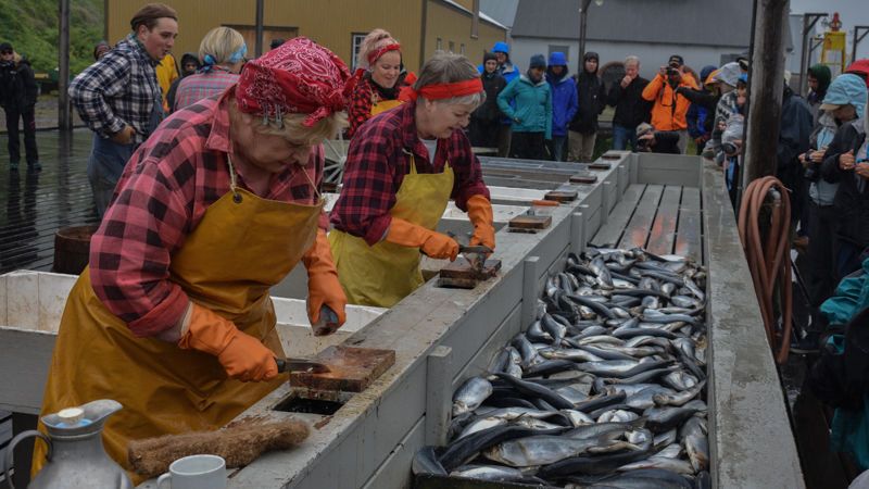 Soon we arrived at Eigg, one of the smaller isles of the Inner Hebrides. Today this tiny island has a population of approximately 100 people, although it once supported 500 people before the infamous clearances. Until 1997 it had been owned by a single absentee landlord, but when it came up for sale the residents got together to raise the money to buy it and it has now become a model of sustainable and green community development. Donna tied up the ship at the dock and, accompanied by her little dog Pibroch, piped us ashore with a fine set of bagpipe airs. Then it was off to explore the island on foot, enjoying the stunning landscape dominated by the looming pitchstone crag of An Sgùrr, the wild flowers, and meeting the locals and some hardy summer visitors.