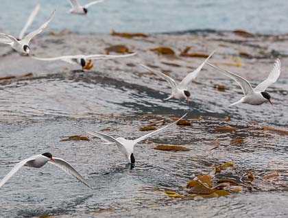 While some chose to hike and climb amongst the tussac to view albatross nests, others opted to enjoy the wildlife from water level via Zodiac, and what wildlife there was to be had! Literally hundreds and hundreds of pintado (cape) petrels as well as Antarctic terns were feeding from the ocean’s surface. King, gentoo, and macaroni penguin breeding colonies were all well established.