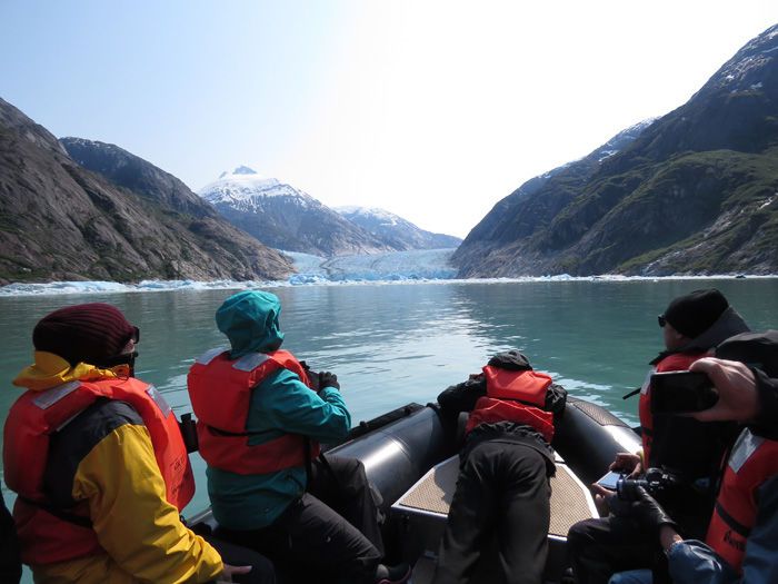 After a long morning of exploring the ice and getting to see the wildlife, we returned to the boat. The afternoon saw no less than 14 people doing the “polar plunge” off the Zodiac boats, including the Captain and most of the staff. The end of the day was a perfect setting, as we left Endicott Arm and spent some time with two humpback whales entering the fjord.