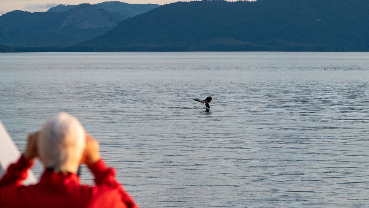 Our final day aboard National Geographic Sea Bird began in Pavlof Harbor. The first coastal brown bear we sighted was a lone juvenile resting at the mouth of the stream, nestled amongst the rocks. We slowly headed to the falls to find a burly adult stalking salmon in the middle of the stream. As the season winds down, these bears are over double their spring weight. While they have been foraging all spring and summer on sages, grasses, berries, and more, the true calorie loading comes from their end of summer salmon feast. Every few minutes, this adult caught yet another salmon, only to gorge on the brains, eggs, and skin. The remaining bits are too muscly for the bears. Strolling along the edge of the stream after its nap, the juvenile joined in the salmon feast. While the adult patiently stalked its next salmon, the juvenile was less patient, often losing focus and staring around. It even appeared to avoid getting too wet by sitting, frog style, on a middle rock. A few minutes into our second round of bear sightings, we observed as a mother and two cubs approached! One quick swipe in the water, and this momma bear caught her first female salmon. She took a clean bite of the tail end, and out poured fresh salmon roe. The two cubs pushed in for a share of mom’s catch, each taking a chunk of the skin for themselves as well. While mom was willing to share, it seemed like one of the cubs was quite talented in the art of fishing. After a few tries, this new cub had already caught its first salmon. With a look to the right, the juvenile was still sitting above the rock, maybe afraid to intervene, or perhaps less of a hunter. Either way, the bear sat, still looking around and waiting for an easy target. We began this week with glacier carved fjords, stunning and close views of glaciers, and moments with marine mammals. We completed our journey at the stream along with the salmon. They come here to spawn and die, and their nutrients are recycled into the forest and animals around us. With such documentary worthy moments captured in our memories and in our photos, we headed back to the ship with an overwhelming sense of awe. I know that you are probably thinking nothing could make this day any better. Alas, this is Lindblad, and during the afternoon, we cruised the area in search of humpback whales. A few hours into our search, we found a relatively fast group of bubble-net feeding whales. With their surface feeding visible from the bow, naturalists and guests alike were shouting for joy. Later in the evening, we identified four of the six whales we sighted, learning that most of them have been sighted migrating to Hawaii for the winter. The evening closed with one final recap, our guest slide show, and conversations into the twilight. I could not think of a better send off from our time here in Southeast Alaska. Until next time! Photo caption: Visiting Pavlof Harbor and Chatham Strait.
