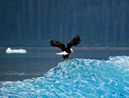National Geographic Sea Lion cruised northward from Petersburg through Frederick Sound and Stephens Passage and early this morning turned eastward into the Tracy Arm-Fords Terror wilderness area. We chose Endicott Arm to spend the morning cruising toward the impressive Dawes glacier, which tumbles from the Coast Range Mountains down to sea level at the end of the 30-mile long fjord. We found photo opportunities with the sparkling icebergs of all sizes and shapes and beautiful shades of blue. Stately bald eagles perched atop some of the bergs. Harbor seals use the ice as safe pupping habitat. We witnessed some drama when an eagle flew by the ship with seal afterbirth dangling from its talons. Arctic terns, black-legged kittiwakes, and other gulls also rest on the icebergs. Later in the morning we were back near the entrance channel, with swirling waters bringing food to the surface. Hundreds of Pacific loons, marbled murrelets, various gulls, and other birds were taking advantage of the productive situation. It was quite a spectacle!