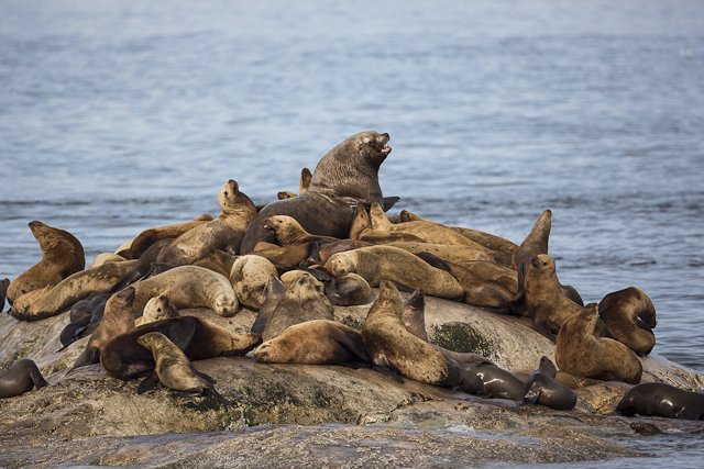 National Geographic Quest arose amidst light clouds within the protected waters of Ushk Bay. This area is known for a salmon stream and yields plenty of opportunity for kayaking and exploring the vast meadows of its inner waterways. On this day’s occasion, guests were able to hike and paddle their way along the coast of Ushk Bay and witness firsthand the life cycle of Pacific salmon making their way upstream. As we transited through Peril Strait, we were lucky to see humpback whales. These immense mammals were “lunge feeding” very near our ship. Being able to witness this event was unique for guests and staff. Lunge feeding is process through which individual whales push their gaping mouths through the surface and collect any fish or planktonic invertebrates in the process. Witnessing this behavior was truly a remarkable experience for all. We will cherish this moment for a lifetime.