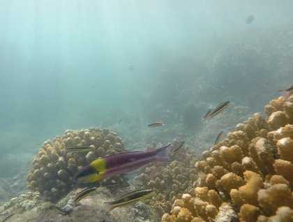 The afternoon was met with aquatic excitement. As people finished their lunches, snorkeling operations began. The beautiful curvy wall of Ensenada Grande held the wind at bay while explorers found new adventure in the shallow water. Ripe with coral and reef fish, the refreshing ocean allowed guests to swim up and down the wall’s bank, around rock outcroppings and into small crannies. Pufferfish of different species and sizes inhabited the shallow reef, taking up different niches which help build the community. Small worms lived among the live coral, popping their rakes out to filter feed only when they’re certain no one is around. Gorgonians and soft coral waved in the current, casually swinging where the water chooses to move them. Not to be outdone, fantastic Mobula rays jumped from the blue water in the background, making the experience more precious all the time.