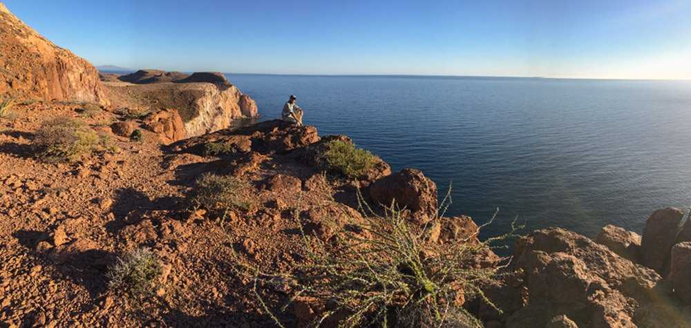 The windstorm of yesterday passed us by and we were left with a spectacular, warm, sunny day in the Espiritu Santo Island archipelago. A few brave souls took a strenuous sunrise hike to the top of the Isla Partida for a spectacular view looking east across the Gulf of California while most of us slept in a bit and spent the morning ashore on walks or playing in the water on stand-up paddleboards or in kayaks. After lunch we sailed around the north end of the archipelago and came upon an amazing school of common dolphins, some with newborns, some mating and many with remoras (the pelagic marine fish that hitches a ride on sharks, dolphins and other larger fish) hanging off their sides. In the late afternoon we anchored at Los Islotes, the northernmost island of the archipelago, where we snorkeled and then finished this rich and full day with expedition landing craft tours as the sun set. Thus ended day seven of our expedition in Baja California.