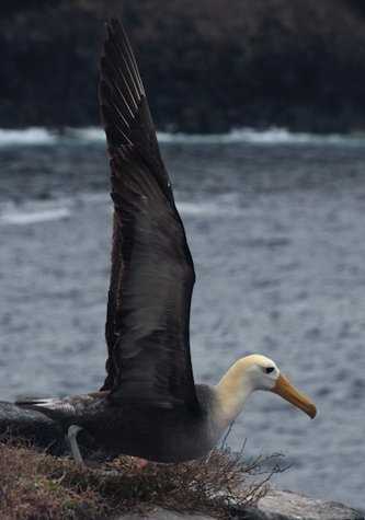 The afternoon was different but overwhelming as well. We disembarked at Punta Suarez. A lava terrain full of boulders took us to an almost unreal place - the cliff from where hundreds of albatross take off. We arrived at the cliff and found the area covered with white heads, which is why we call this place “the airport.” We found some of the first eggs of the year and even witnessed some courtships! But Española has more to offer. Many of the species we saw are just found on this island - the mockingbird, the lava lizard, the snake, they are all endemic species to Española and are found nowhere else. And finally, almost at the very end of the visit, we found a Galapagos hawk.