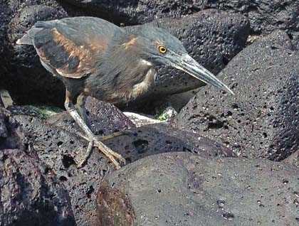 After a short navigation we arrive to Suarez Point on the western area of this relatively small island. Here we find a density of life that occasionally blocks our national park trail. Marine iguanas are draped over the rocks as they try to warm up in the afternoon sun. The Española mockingbirds make another appearance and they follow some of our hiking groups. We find along the coastal cliffs Nazca boobies and the occasional blue footed booby. As all concentrate looking out over the ocean we find a great deal of air traffic with Galapagos shearwaters and red billed tropic birds avoiding collisions at their breakneck flight speeds. A number of Galapagos hawks are spotted with a few young ones eyeing us, possibly considering whether we are a food source or not. At the southern cliffs we feel the sea spray in our faces as waves are crash into a crack in the lava flow and explode into a cloud of water vapor. Larger more elegant birds are spotted cruising on the updrafts along the cliffs. As we head inland, the majestic waved albatross of Galapagos is found nearby with some large, ungainly chicks awkwardly walking and awaiting food from their parents. After a full day we all have a great deal to take in as we hike toward our floating home. The experience is not over, however, as the sun dips in the distance.  A sea lion gives birth on the trail in front of a surprised group!  It was an amazing finish to an amazing day.