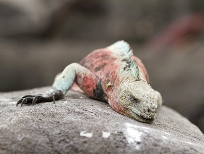 After lunch we disembarked on the western side of Española Island. This side of the island is another world. The wildlife is superb! As we walked along the shore, marine iguanas and sea lions were all around us! On the interior of the island we walked through colonies of Nazca boobies and we were lucky enough to see some waved albatross. The iguanas of Española are already marking their territories. These lizards are starting their breeding season and they show beautiful colors.