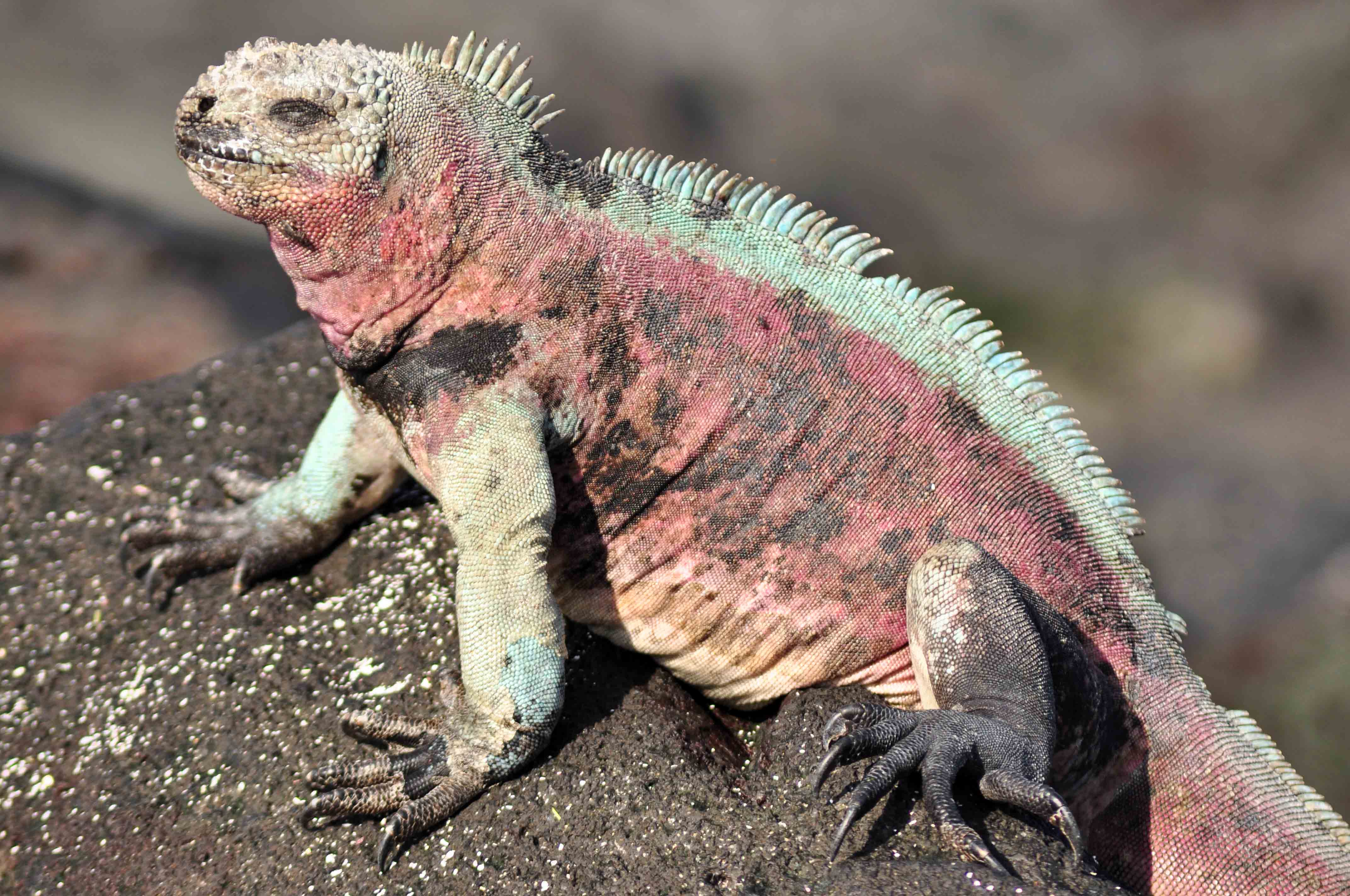In the afternoon and after a short navigation, the National Geographic Endeavour dropped anchor at Punta Suarez. Our activities began landing on the small dock, which was completely wet due to the big waves that crashed on the rocks behind it. We made our way inland, where the vegetation looked dry with no leaves, due to the lack of rainfall; some warbler finches fluttered among the bushes and small ground finches fed on dry seeds along the narrow path. The sun disappeared behind some clouds and a soft wind caressed our faces, cooling this place that has been heating up for so many hours. Our efforts were finally rewarded when, among the bushes, we observed our first waved albatross, which was incubating an egg; few meters from it, we found many others just alongside the trail. We were delighted to observe their elaborate courtship dance, hearing their unmistakable calls and seeing their long wings, reminding us that they are by far the largest bird in the Galapagos. Finally, we arrived to the cliffs where Nazca boobies and blue-footed boobies were nesting and caring for their chicks, while in the air albatrosses, Galapagos hawks, frigatebirds, blue-footed boobies and sea gulls displayed their magnificence and uniqueness. We arrived to the blowhole, which looked spectacular with huge waves breaking against the rocks flooding the seashore with white foam. We stopped many times along the trail to observe this natural formation and the albatross landing and taking off from the cliffs, using the flat terrain as a real airstrip.