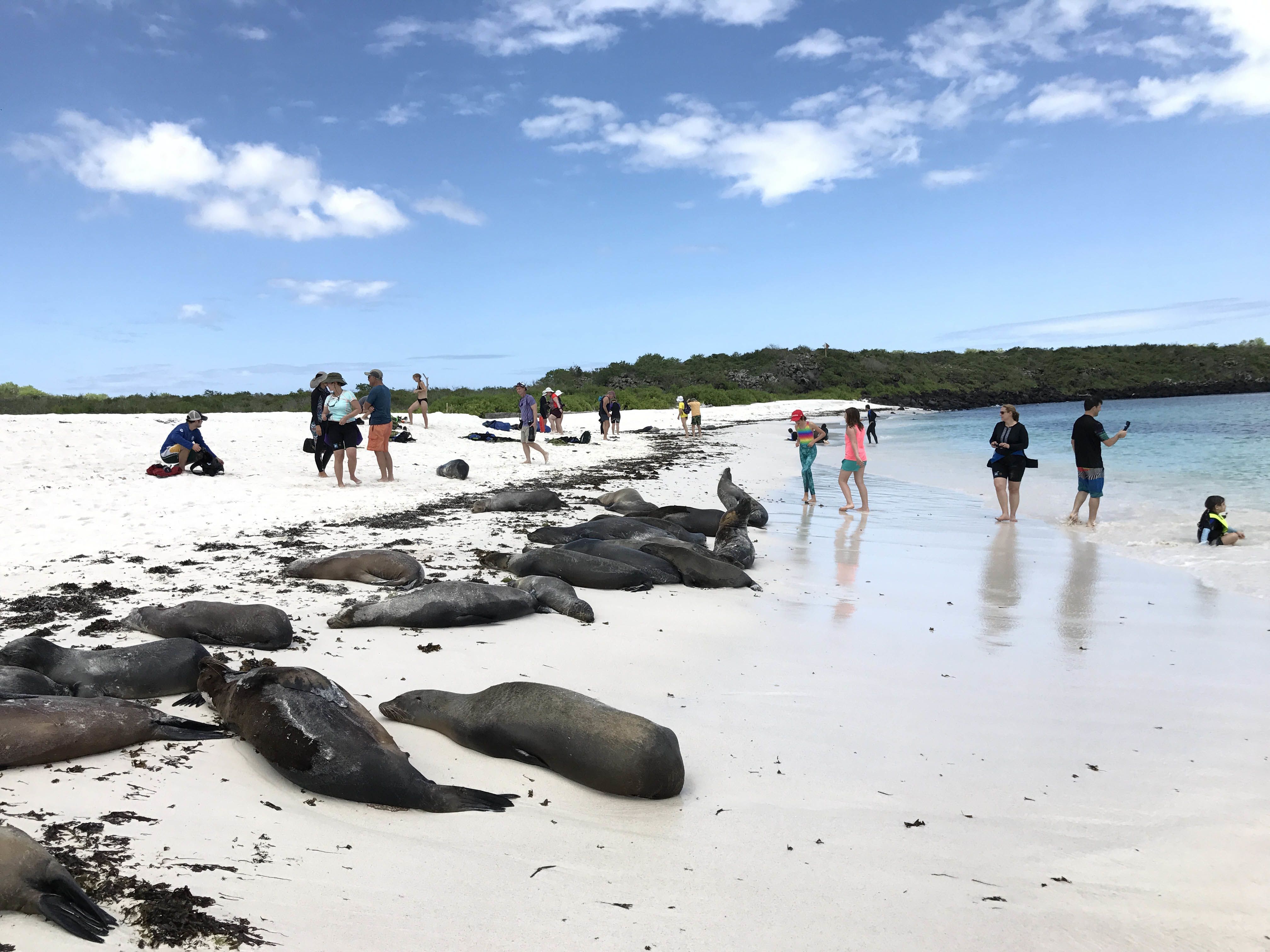 It’s our first full day of expedition on National Geographic Islander . We started our day with a morning hike on North Seymour, which is one of the best islands to observe nesting colonies of frigatebirds, blue-footed boobies, swallow-tailed gulls, and many more species of marine birds. Later in the morning, National Geographic Islander navigated to the beautiful Rabida Island, where we enjoyed an amazing afternoon. Guests swam and snorkeled with sea lions and many different species of reef fish off the red sand beach. We walked to a pond located behind the beach and observed flamingos nesting after more than 20 years on this island.
