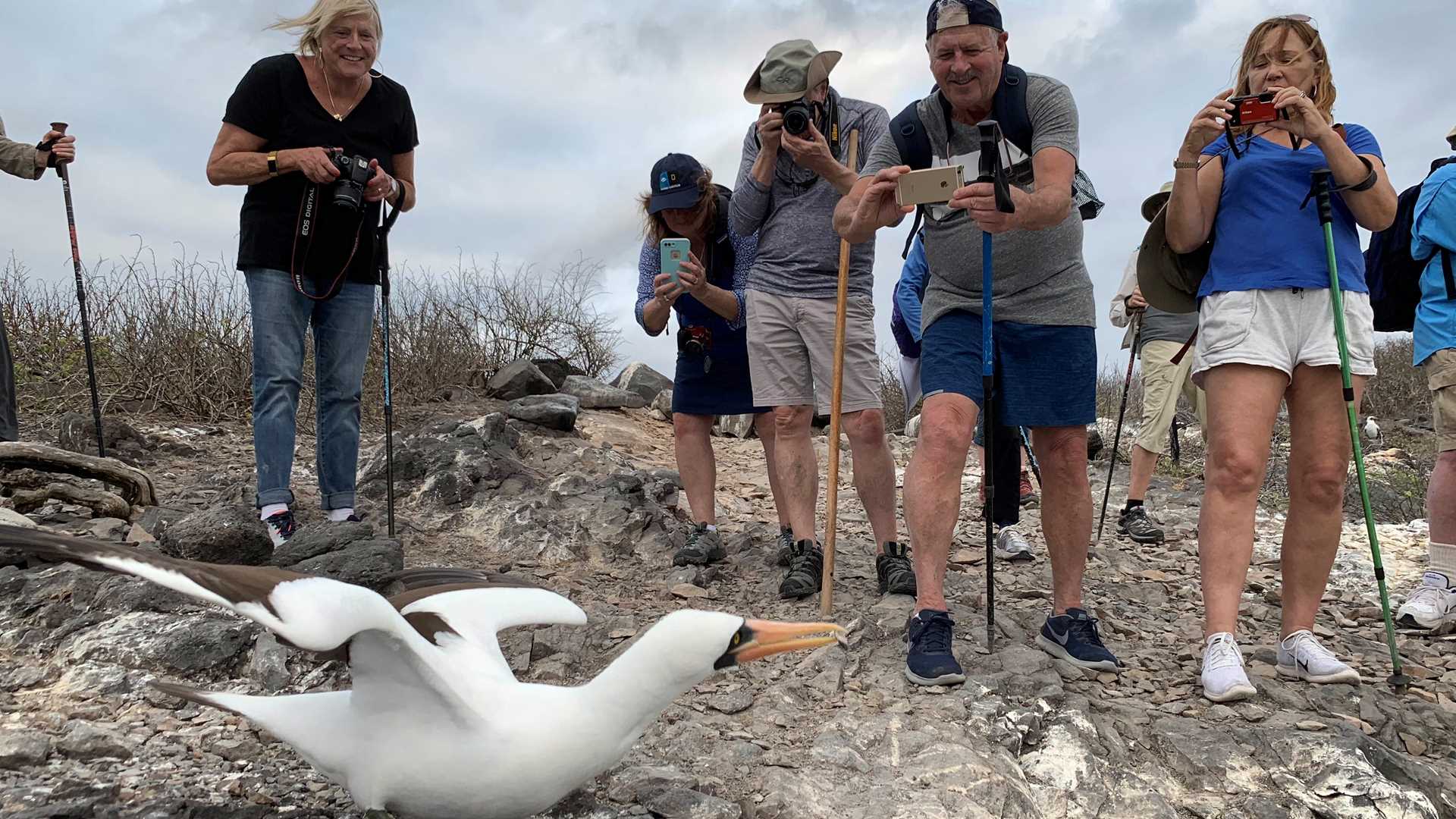 Today we finished our last day in paradise on Genovesa Island, one of the most exuberant and popular islands of the Galapagos. We started the morning by walking among red-footed boobies, frigatebirds, and swallow-tailed gull colonies around Darwin Bay. To close a very productive photo expedition week, we walked Prince Philip’s Steps at sunset. This gorgeous cliff is an airstrip for tropicbirds, petrels, and boobies. Guests were delighted to put to use new photo skills to collect memories, and thousands of new images are waiting to be organized and processed…