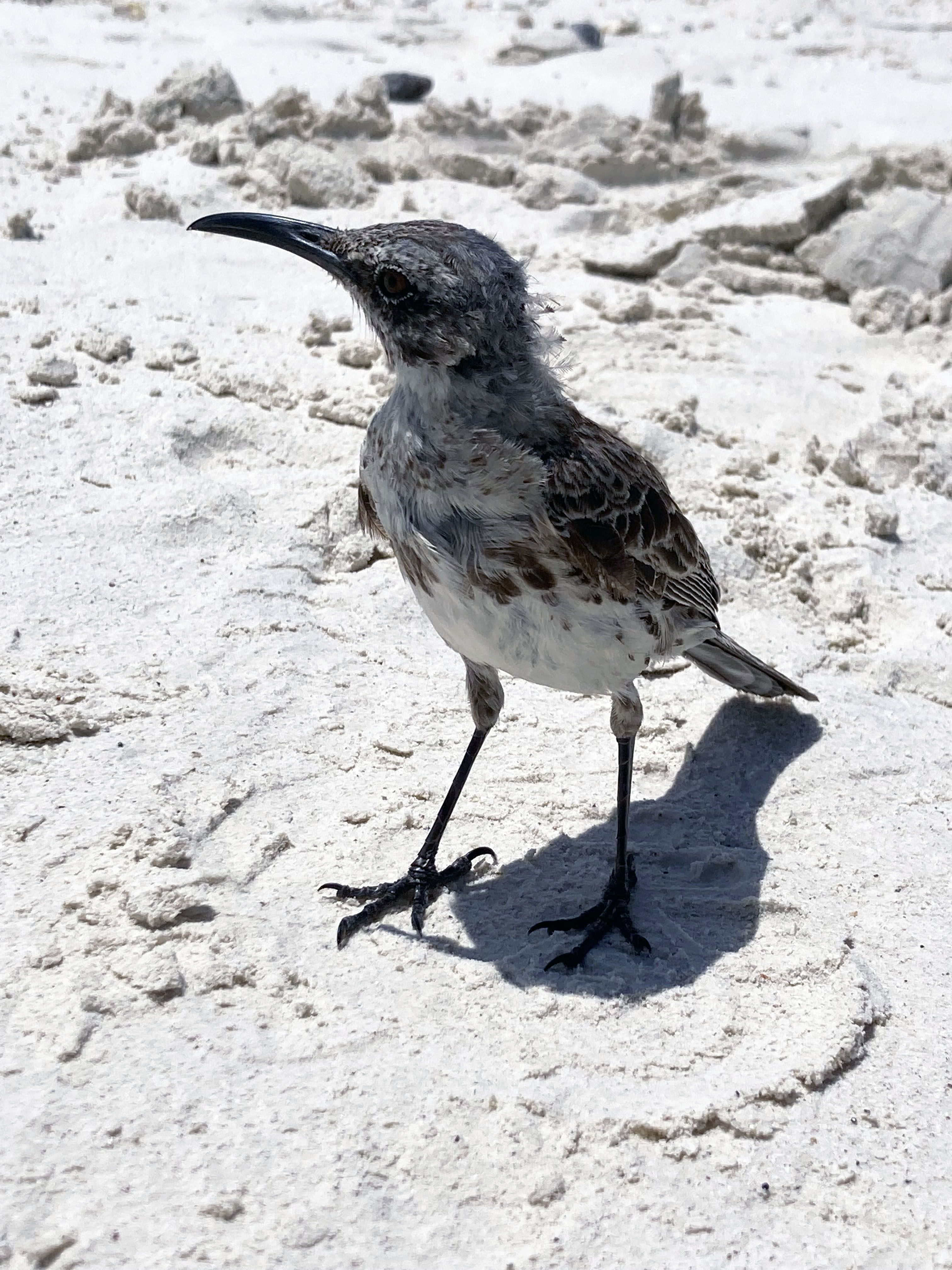Today we woke up in Gardner Bay on Española Island. After a delicious breakfast, some guests disembarked for a deep-water snorkeling experience along the shore of Gardner Islet. Other guests visited Gardner Beach. We observed many charismatic Galapagos sea lions basking on the white sand. We also spotted the hood mockingbird, one of the four species of mockingbirds found on the Galapagos Islands.