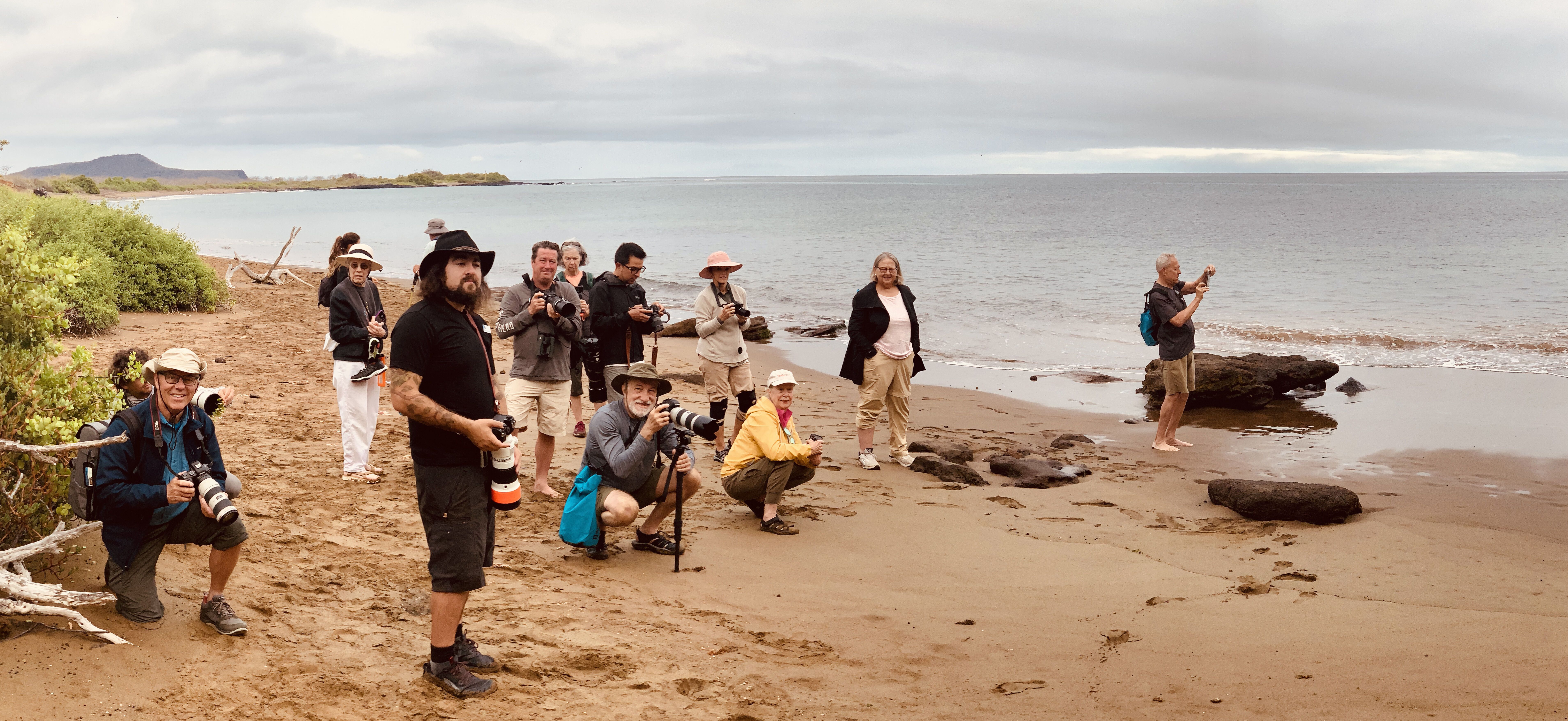We woke up to super calm waters off the northern coastline of Floreana Island. Perfect conditions for a bit of kayaking among the offshore islets near Post Office Bay! Brown pelicans, egrets, green sea turtles, and red, black, and white mangroves…a peaceful environment for an hour or so before breakfast. Some guests went straight to the beach to walk a few yards through saltbushes and found themselves facing the famous “barrel” of Post Office Bay. It’s been over a century since the barrel was first placed here for use by whalers to exchange correspondence and carry back letters of business, or perhaps letters to loved ones. Today, postcards fill the barrel, but the turnover is fast. Each day, some of the postcards are taken for delivery while others are left behind in hopes that someone will continue the tradition and hand-deliver them in the weeks to come. Between breakfast and lunch, we played in or on the water around Champion Islet, just to the northeast of Floreana Island. We didn’t make a landing but explored by Zodiac, including a birdwatching circumnavigation followed by deep-water snorkeling in incredible waters with parrotfish, angelfish, pufferfish, damselfish…all kinds of fish! Sea lions buzzed by, desperate to draw attention and get a reaction out of us, which they did. Squeals and shrieks were heard. After an instructional briefing on iPhone photography and a presentation on Charles Darwin in the afternoon, we went ashore on the main island of Floreana. There has been quite a drought this year and not much rain the previous year either. The land was dry, the vegetation was brittle, and dead leaves were everywhere. But all that is fine for the native and endemic species; after all, they’ve been through this before, over the millennia, and survived. The stress is on the introduced species who depend on higher amounts of freshwater for survival. While their defenses are down and populations are stressed, now is the time to really push for programs to eradicate introduced species. Floreana Island is ready for restoration. The National Park and collaborating NGOs are preparing Floreana to receive native species that were once thought doomed for extinction. Giant tortoises, Floreana mockingbirds, and racer snakes may yet survive and prosper with the help of these organizations. We spent the afternoon following an easy trail from a dark-colored beach of mineral origin and over the isthmus to a white, organic beach where green sea turtles were riding the breakers offshore. The turtles are not quite ready to come ashore and lay eggs, as temperatures are still too low for another month or so. But a great blue heron and frigatebird were checking out the scene, just in case someone tried for an early nesting. It will be a couple months before hatchlings try to race to the ocean in the dark of night. We returned to our base of operations as the sun set low on the horizon. National Geographic Islander II was waiting for us with hot water and the comforts of home.