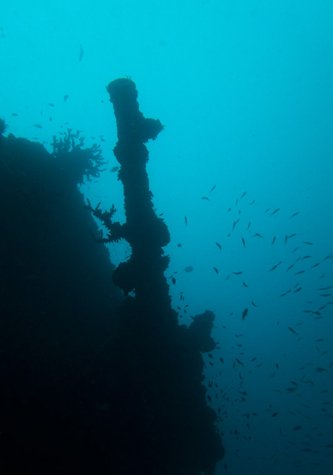 For me, the highlight of the day was being able to dive on the wreck of the SS President Coolidge. Originally built as a luxury liner, the “Coolidge” was converted during the war to a troop transport. The ship was approaching the town of Luganville on Espirito Santo when it struck a mine, and was run ashore by the captain. Now, many years later, it is lying on its side, just a short distance offshore, making it one of the greatest dives in the South Pacific.