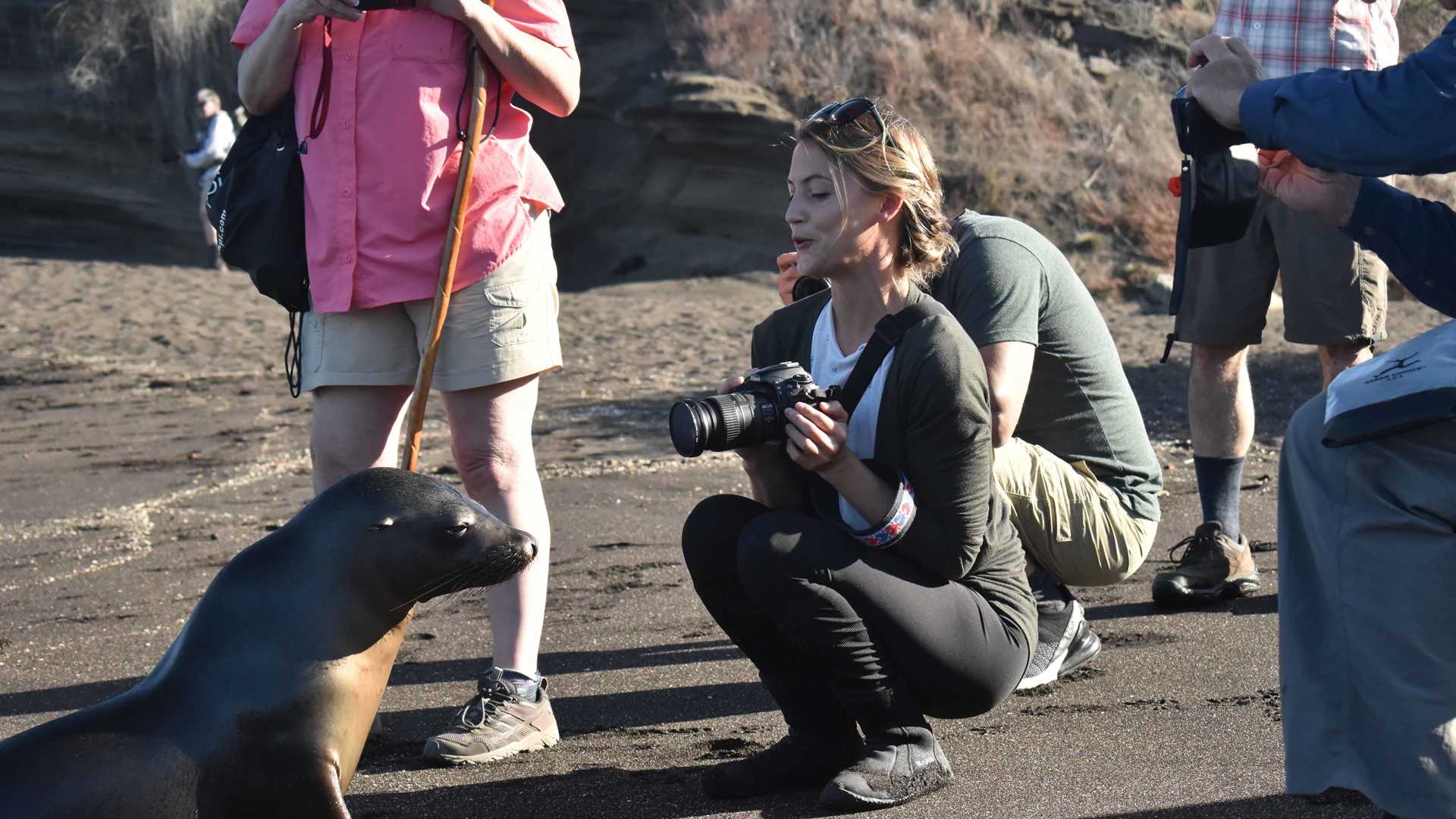 Today we started our activities at 7:00 am to explore a pristine Espumilla Beach full of interesting creatures including ghost crabs, mating sea turtles, pelicans, blue-footed boobies, mockingbirds and lots of Galapagos hawks. A small group went for some kayaking along the coast of the island of Santiago.