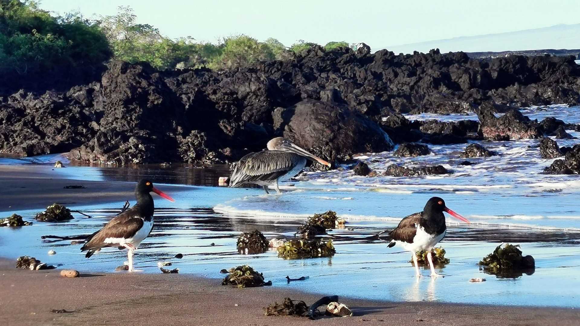 Photo caption and credit: We encountered a pair of American oystercatchers as well as a brown pelican hanging out together at the end of Espumilla Beach. Photo by Gilda Gonzalez