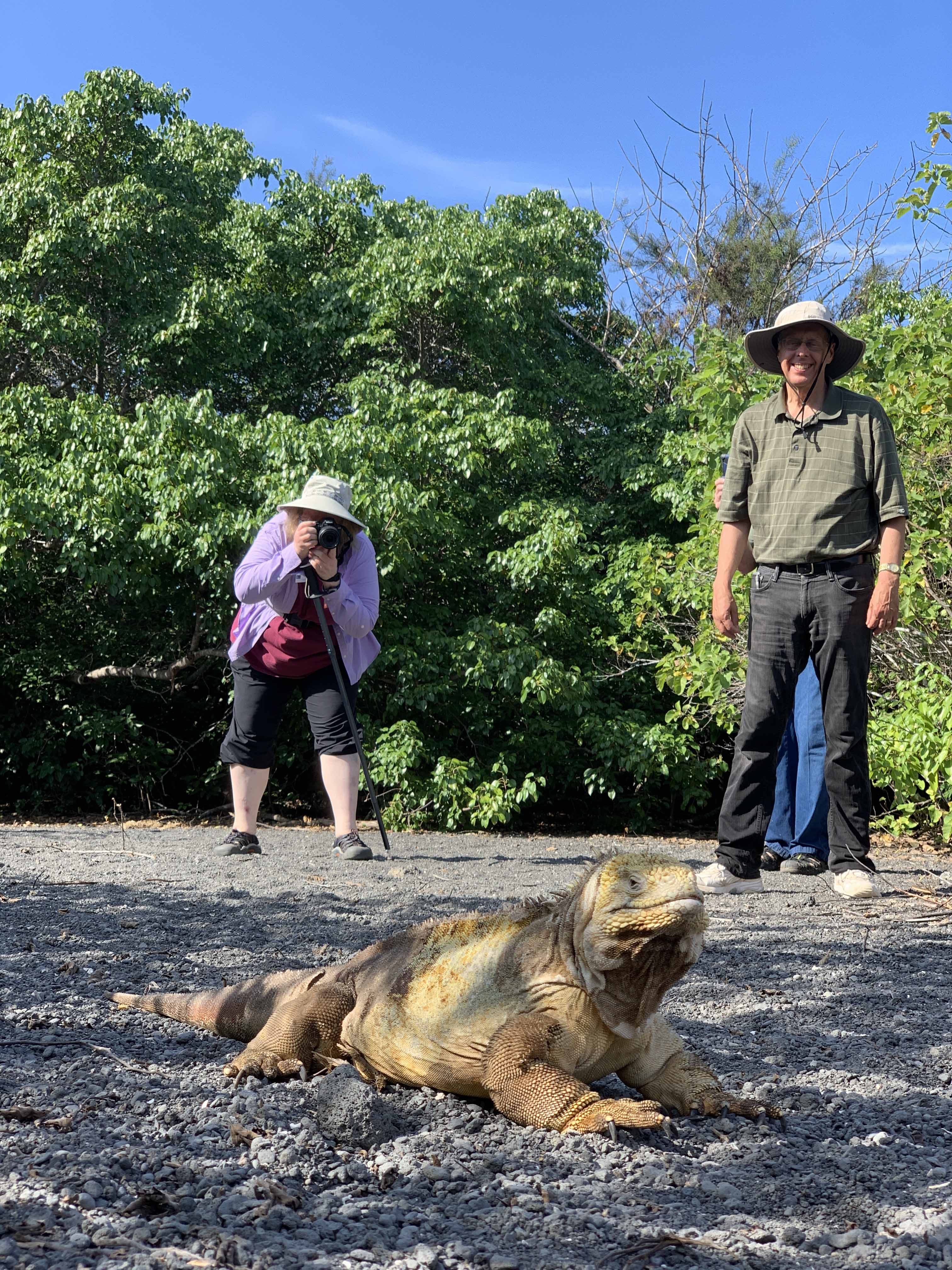 Today, National Geographic Endeavour II visited Cerro Dragon, located on the north part of Santa Cruz Island. We found one of the largest colonies of land iguanas. During our hike, we spotted the iguanas all around the trail. Some basked on the vegetation, and others were active. We saw the zigzag head movement they use to protect their territory and impress females. An Ecuadorian buffet lunch was set up in the dining room. We started with the traditional ceviche and ended with tres leches for dessert! We enjoyed snorkeling and Zodiac rides. We observed wildlife all over the place, including spotted eagle rays, sharks, blue-footed boobies, great blue herons, marine iguanas, and hundreds of other animals. They all reminded us why the Galapagos is so special.