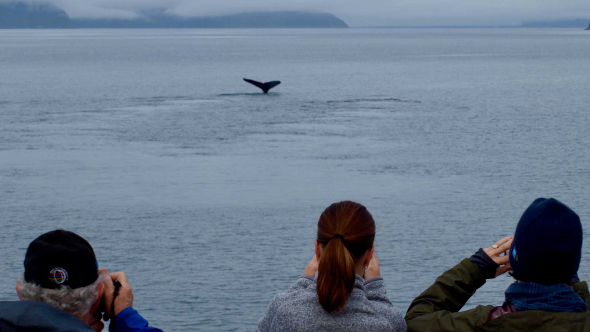 This morning found us along Icy Straight, under calm, cloudy, and misty conditions and just coming to border Glacier Bay National Park. A pair of humpback whales greeted the early risers as they slowly cruised the waters along with us, giving us a chance to watch and hear them nearby; one, two, three, even four breaths then a show of flukes, dive for three, four, five minutes, then resurface.