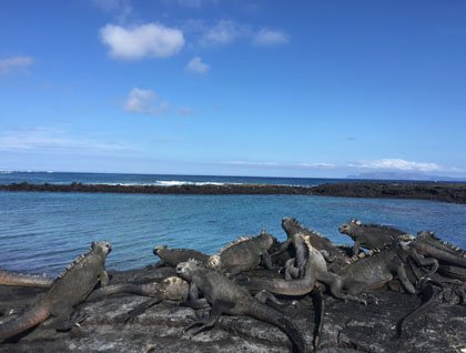 We also had the unusual opportunity to visit a lava flow extension, which our young explorers especially enjoyed. We took a quick break to sip some water and to discuss the extraordinary story of Roy Sudbury, a pilot from World War II who tried to establish a colony in Fernandina Island and failed. He did eventually manage to achieve his goal in Essex point, which is located in Isabella Island.