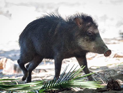 As we stood out on deck, taking in this spectacular backdrop, we were treated to sightings of many species of sea birds, such as boobies and Galapagos shearwaters. To top it off, our deck officers sighted a large school of common dolphin, Delphinus delphis, off in the distance. We changed direction and spent some time admiring the acrobatic antics of these small and attractive marine mammals, many of which were accompanied by tiny calves. We eventually took up our course again and dropped anchor off the coast on Punta Espinoza, Fernandina – the youngest and most pristine island in the archipelago. Our hikes over the strangely-textured lava flows led us through mangroves, past spiky patches of lava cactus and tidepools home to Galapagos sea lion pups, and through dense groups of the largest marine iguana population in Galapagos, many of which were displaying aggressive territorial behavior as they come into their breeding season.