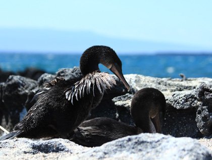 We dropped anchor at the southern end of the caldera of Ecuador Volcano, an area called Punta Vicente Roca. The first activity of the afternoon was snorkeling! The cool waters of this place offer a unique experience, and we encountered sea turtles, sea lions, flightless cormorants, Galapagos penguins and lots of fish! It was very rewarding to hear all the comments from our guests: incredible, unbelievable, amazing, I will do it again! Afterwards we came back to explore the coastline from the Zodiacs, where we were able to get a different perspective of the Galapagos penguin, sea lions, green sea turtles showing their heads, and flightless Cormorants drying the feathers of their tiny wings!