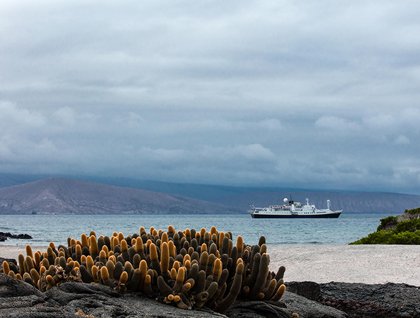 During lunch, we headed to the northern volcano of Isabela Island, which is partially collapsed. Punta Vicente Roca is a refugee and resting place for the graceful green pacific sea turtle. Our snorkeling outing was pleasant in this calm water with its distinctive volcanic landscape. Our underwater quest was memorable, full of encounters with flightless cormorants, penguins and sea lions. Colorful fish and birds were also interacting while we spent some time cruising in Zodiacs along the coastline. We ended the day with a celebration on the decks of the National Geographic Endeavour, crossing the equator at sunset as we raised a glass of wine to toast another remarkable day in the unique and paradisiacal Galapagos Islands.