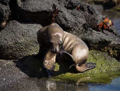 Today we woke up anchored next to the youngest island is the Galapagos Archipelago, Fernandina. Due to its proximity to the source of magma, it has erupted over twenty times in the last two hundred years. This morning we went on a hike to explore the marvels of Punta Espinoza. Some call this place the “marine iguanas metropolis” due to the hundreds of individuals that can be found here, resting on the rocks. As it is currently the mating season in the Galapagos, we saw the territorial males fighting against each other to ensure their contribution on the next generation. Also we found some sea lions nursing their pups.