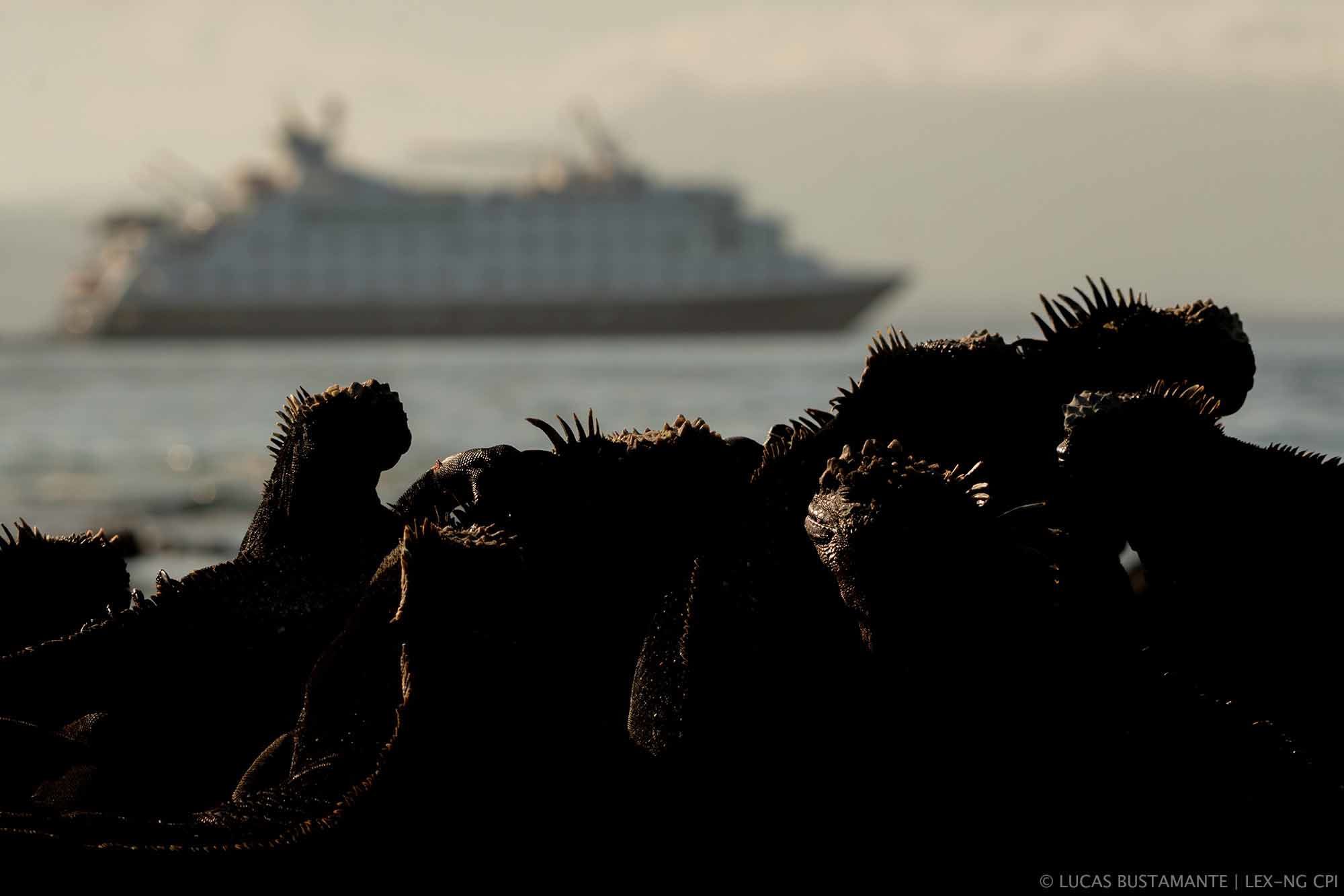 Guests onboard National Geographic Endeavour II spent the day exploring Fernandina and Isabela Islands. Photography enthusiasts left early for a hike at Punta Espinoza to catch the morning light. Photo instructors came along for the hike to give pointers to guests on how to get the perfect shot of marine iguanas, flightless cormorants, Galapagos hawks, and even racer snakes. We discussed the evolutionary history and behavioral ecology of these remarkable creatures, unique to the Galapagos archipelago. There were many young marine iguanas throughout the site, some of which fell prey to racer snakes and Sally Lightfoot crabs right before our eyes.