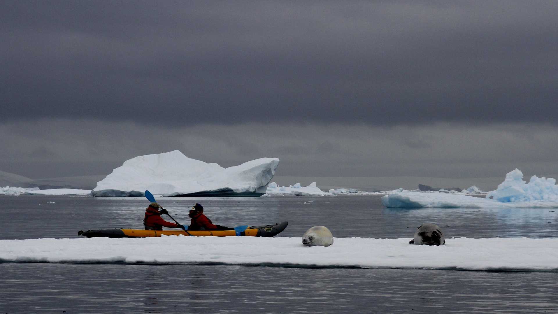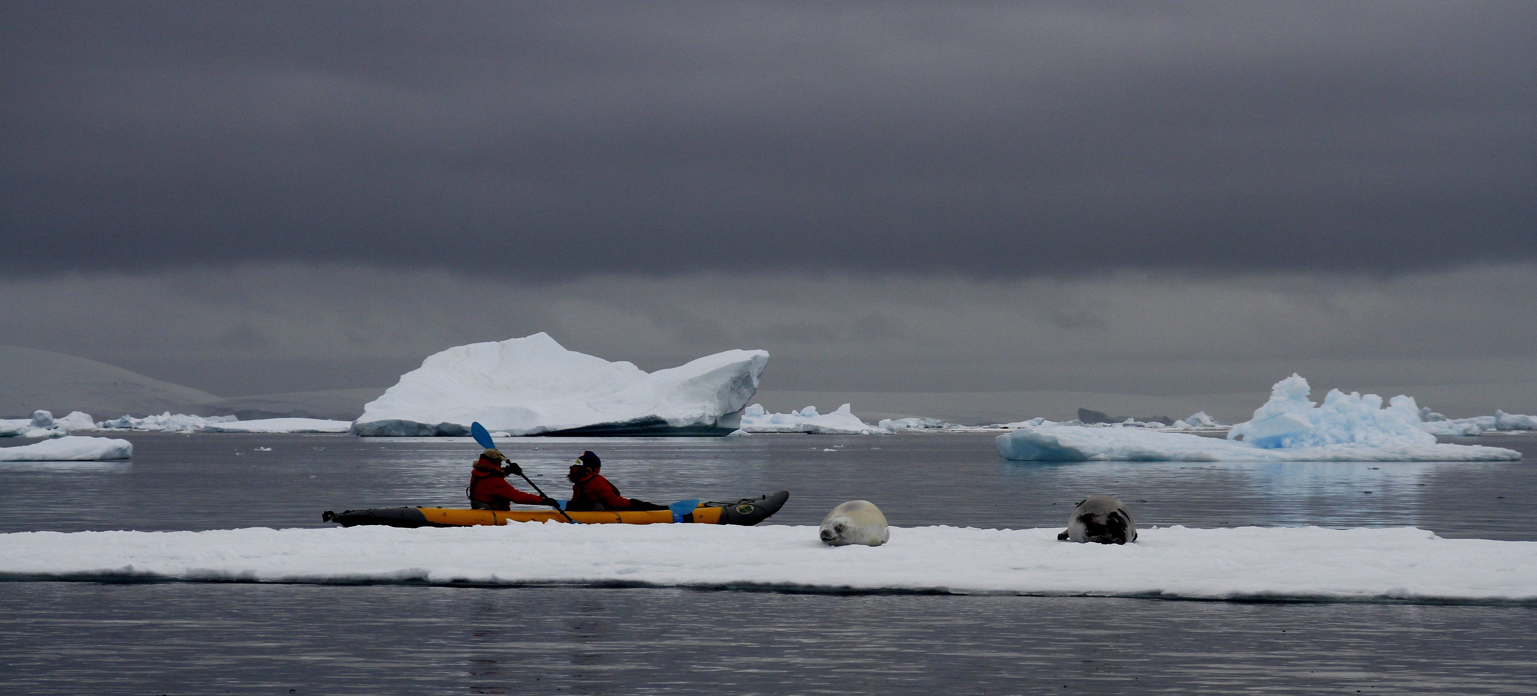 After a hearty lunch, we landed and hiked around and explored nearby Prospect Point, which is the location of an old British Antarctic base known as “J.” Our guest then explored the ice-filled bay in kayaks, where they paddled among seals and penguins. To end the day, we offered lifetime opportunities to plunge into the freezing (exhilarating) waters of the Southern Ocean!
