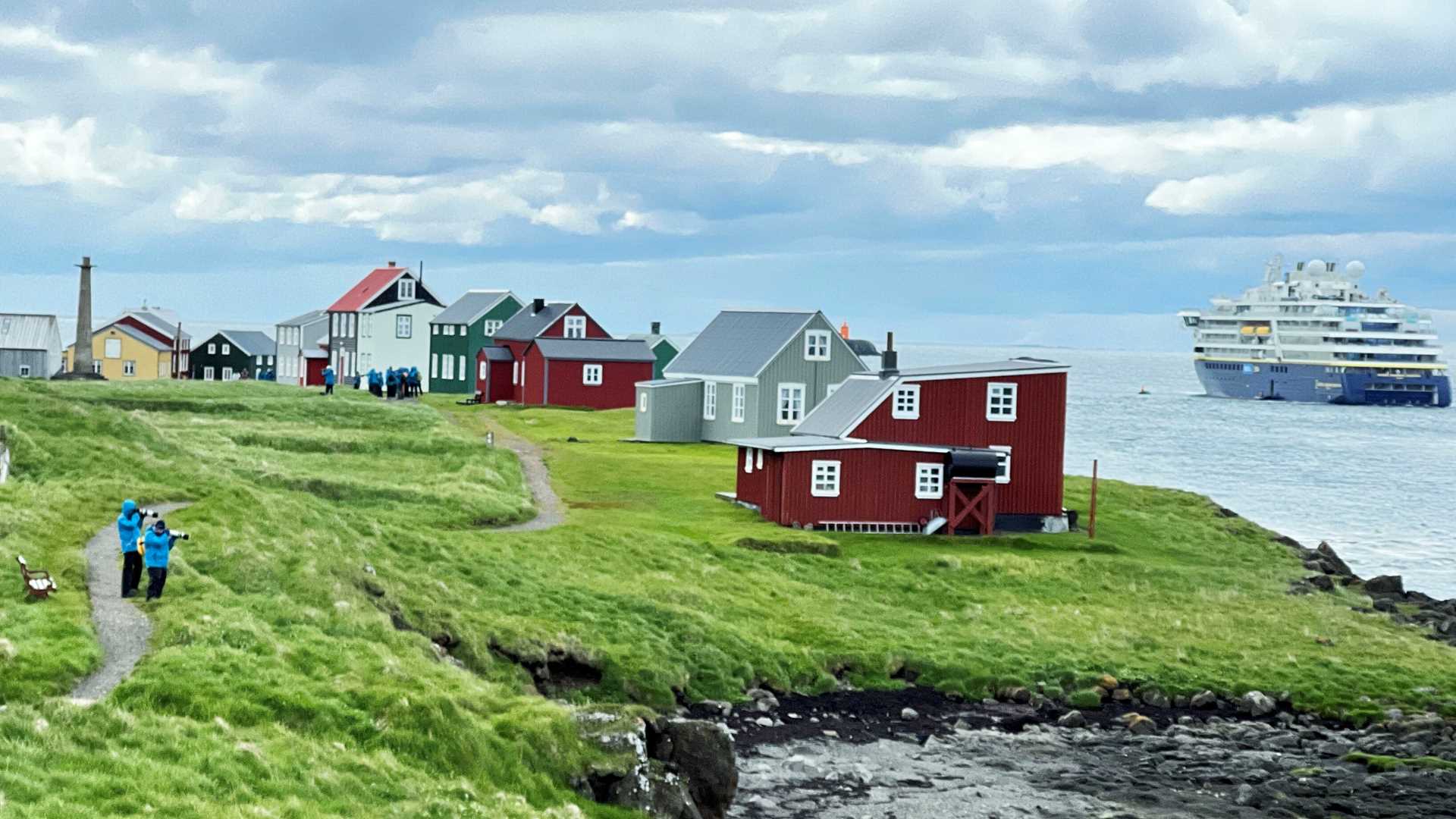 You may not know it, but you’ve probably seen the dramatic Vestmannaeyjar Islands off the south coast of Iceland before. It’s like sailing into an Instagram picture. The uniquely sculpted land is both picturesque and memorable. Heimaey is the most amazing. The harbor here was nearly sealed off by an enormous eruption in the late 1970s that demolished many of the houses in the town at the water’s edge. Today, we climbed the remaining lava pile, still warm from the magma lurking beneath the island’s surface. The blue sky gave us broad views, and the strong winds gave us a true taste of the local life. After dinner, we got a closer look at Surtsey—a volcanic island that is younger than many of us on board. It’s a bittersweet but fitting end to our explorations of the land of fire and ice.