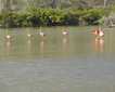 We made a landing soon after lunch onto the exposed reef flat, and then spent a couple hours or so exploring this densely vegetated island with an amazing, hard-packed coral rubble beach all around the outer edge. Some interesting sea turtle tracks were noted right near the landing, showing us that this must be an important breeding site for these beautiful creatures (at least one green sea turtle was seen earlier by some of the snorkelers). Those who went ashore this afternoon were able to walk on the beach and meander through the narrow band of tournefortia bushes that seemed almost as though they had been planted for someone’s pleasure. Most of the island is covered with coconut palms, including both mature trees and countless thousands of sprouted coconuts that have filled in most of the gaps between the trees. It was actually difficult walking over the coconuts that nearly covered the ground in some places. Inside the dense forest, we were able to view many white terns and black noddy terns perched or nesting overhead in the cordia and pisonia trees, as well as lots of tiny skinks crawling around the leaf litter. However, the most exciting creatures encountered onshore were the immense and somewhat creepy coconut crabs. These impressive beasts are the largest terrestrial arthropods on earth. They can tear open coconuts with their huge pincers! Many of us also enjoyed a walk/wade in the shallow reef water where several young black-tipped reef sharks, finger-lipped mullet, and a peppered moray eel were spotted in the large, open tide pools.