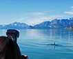 After our very early exploration, we headed back to the ship. That was when nature offered us a wonderful surprise. Our expedition leader Lynn Fowler announced by radio that many dolphins were surrounding our ship! Indeed, there were about 200 bottlenose dolphins swimming and leaping close to our Zodiacs. We all yelled in excitement, especially the youngest explorers.