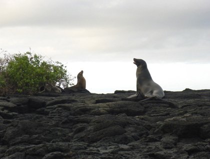 In the afternoon we visited the legendary post office barrel of Floreana. It has been there since 1793. This barrel became the most important mechanism of communication on this side of the Pacific Ocean. The users of this system were the English whale hunters. Later on we enjoyed kayaking and Zodiac riding among sea lions. This place is magnificent! There is so much wildlife all around and we even found a Galapagos penguin!