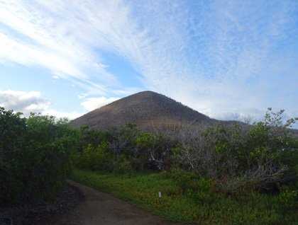 Today we arrived at Floreana Island on the southern realm of Galapagos. Our day started with a pre-breakfast outing to Punta Cormorant. This morning we landed on a green olivine beach and our goal was to look for Greater flamingoes and to reach “La Picona” beach where Pacific green sea turtles nest every year. As we started to walk along the trail we got to a brackish water lagoon where we spotted about fifty flamingoes, some of which were nesting while others were actively feeding on brine shrimp. At “La Picona” beach we observed from the shore several diamond stingrays well camouflaged in the sand which were pushed back and forth by the small waves. Nearby some green sea turtles were swimming and raising their heads out of the water to breathe.