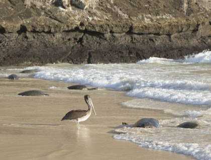 We disembarked very early this morning to visit Punta Cormorant. This visitor’s site has a brackish lagoon, which is the home to pink flamingos, and this time of the year Pacific green sea turtles are nesting as well. It was a rewarding early activity for everyone.