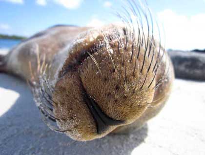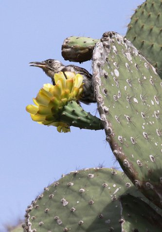 Our adventure onboard the National Geographic Endeavour brought us today to Champion Islet. It was a beautiful morning, with a clear blue sky and great conditions for our morning outings. We offered Zodiac rides around the small islet, in order to observe Galapagos sea lions, the great prickly pear cactus and many species of sea birds that exist here. We were not disappointed, for we saw many swallow-tailed gulls, red-billed tropicbirds, Galapagos shearwaters, brown noddies, ruddy turnstones, Nazca and blue-footed boobies, and to our surprise, a juvenile red-footed booby was spotted! To top it all off, and thanks to the great eyes of our Zodiac drivers, we found the rare Floreana mockingbird. It was amazing to see this bird feeding off of the nectar from the yellow cactus flower—a unique moment that resulted in wonderful pictures!