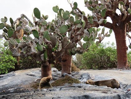 Not far from the landing beach there is a group of islets known as La Lobería. Some of our guests had a chance to kayak along the rocky shoreline, while others joined the Zodiac rides that would take them close to La Lobería. When we approached the sea lion colony that lives in La Lobería we were pleasantly surprised to see how curious the young pups were, following us and leaping out of the water. These are shallow waters and many sea turtles come here to feed or rest from their long journeys, or perhaps to rest after the egg-laying season.