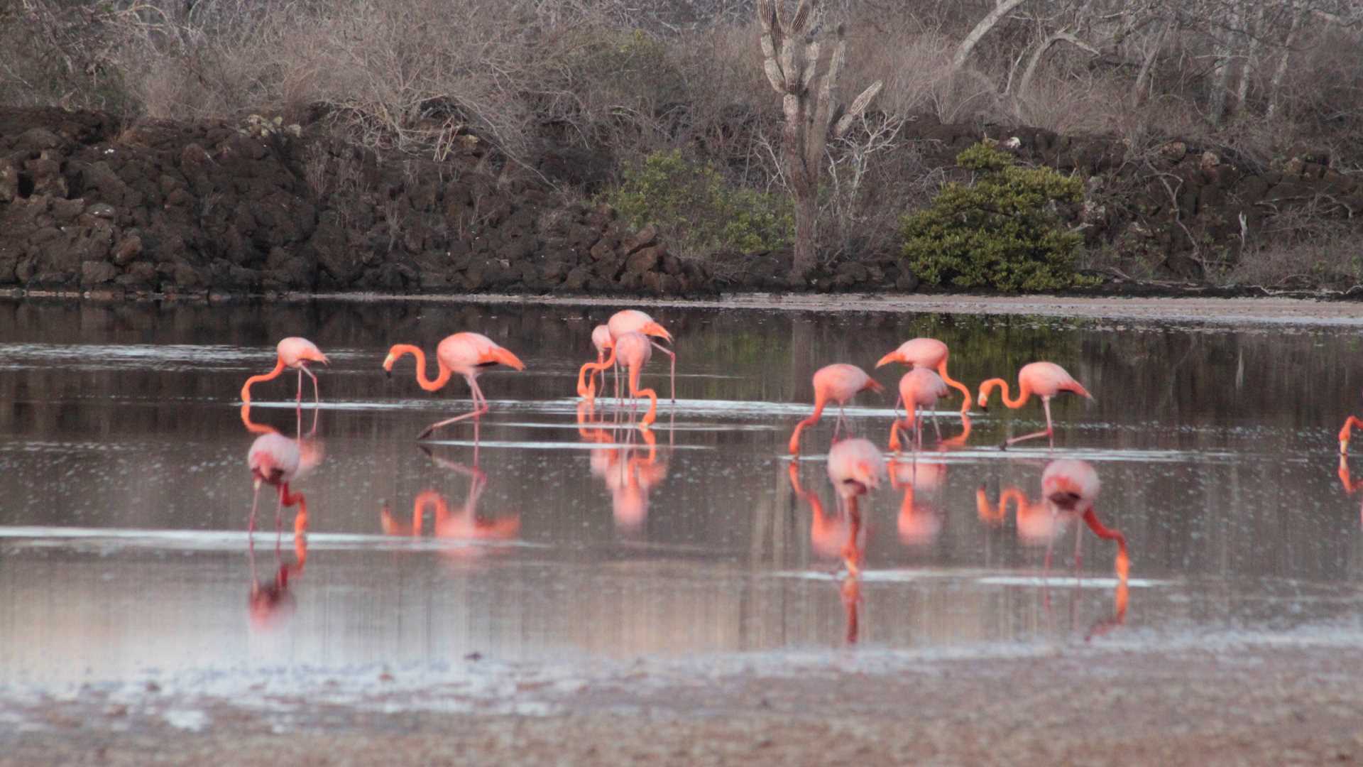We began our day with an amazing early morning walk at Punta Cormorant. A group of sea lions welcomed us on the olivine beach, allowing us a great opportunity to take pictures of them. As soon as we approached the lagoon, we saw many Caribbean flamingos, Phoenicopterus ruber. These stunning birds undertake unseasonal migrations from lagoon to lagoon according to local food abundance. There are approximately five hundred individuals within the archipelago, and we had the chance to see a few of them.