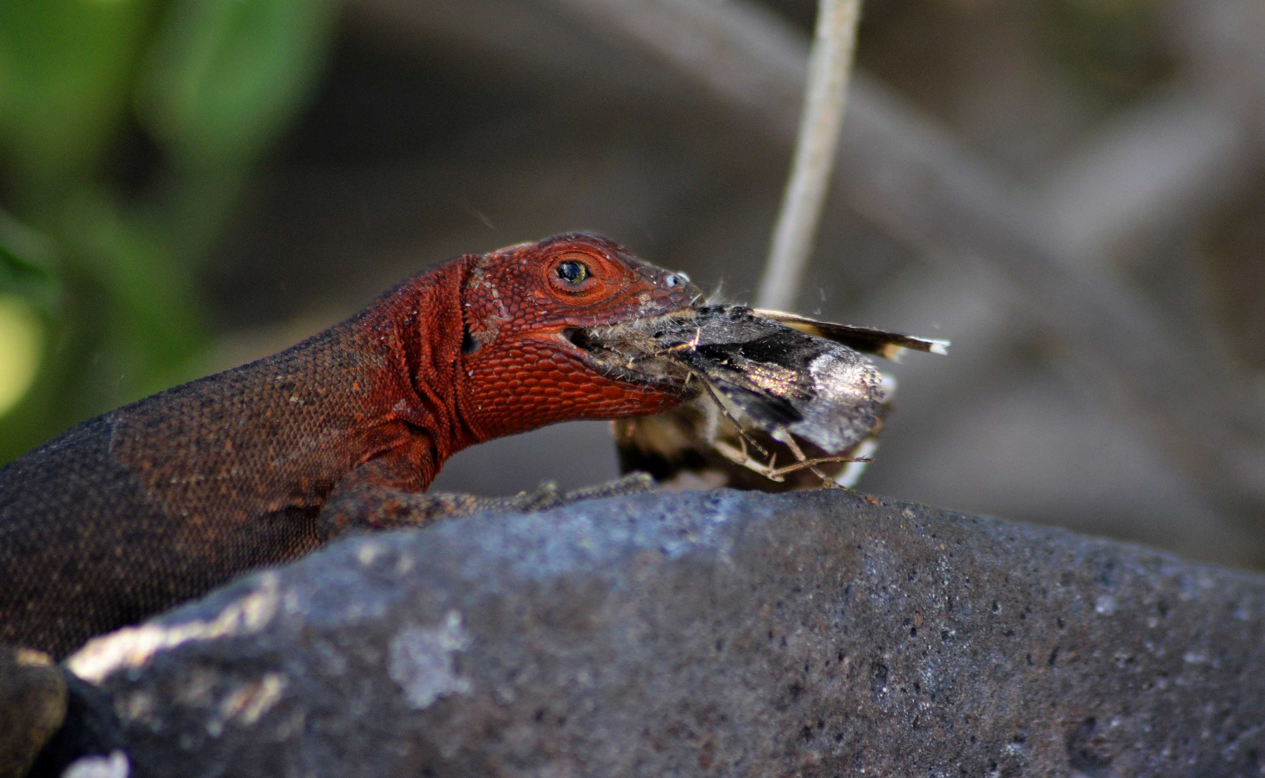 Today, National Geographic Endeavour II visited Cerro Dragon, located on the north part of Santa Cruz Island. We found one of the largest colonies of land iguanas. During our hike, we spotted the iguanas all around the trail. Some basked on the vegetation, and others were active. We saw the zigzag head movement they use to protect their territory and impress females. An Ecuadorian buffet lunch was set up in the dining room. We started with the traditional ceviche and ended with tres leches for dessert! We enjoyed snorkeling and Zodiac rides. We observed wildlife all over the place, including spotted eagle rays, sharks, blue-footed boobies, great blue herons, marine iguanas, and hundreds of other animals. They all reminded us why the Galapagos is so special.