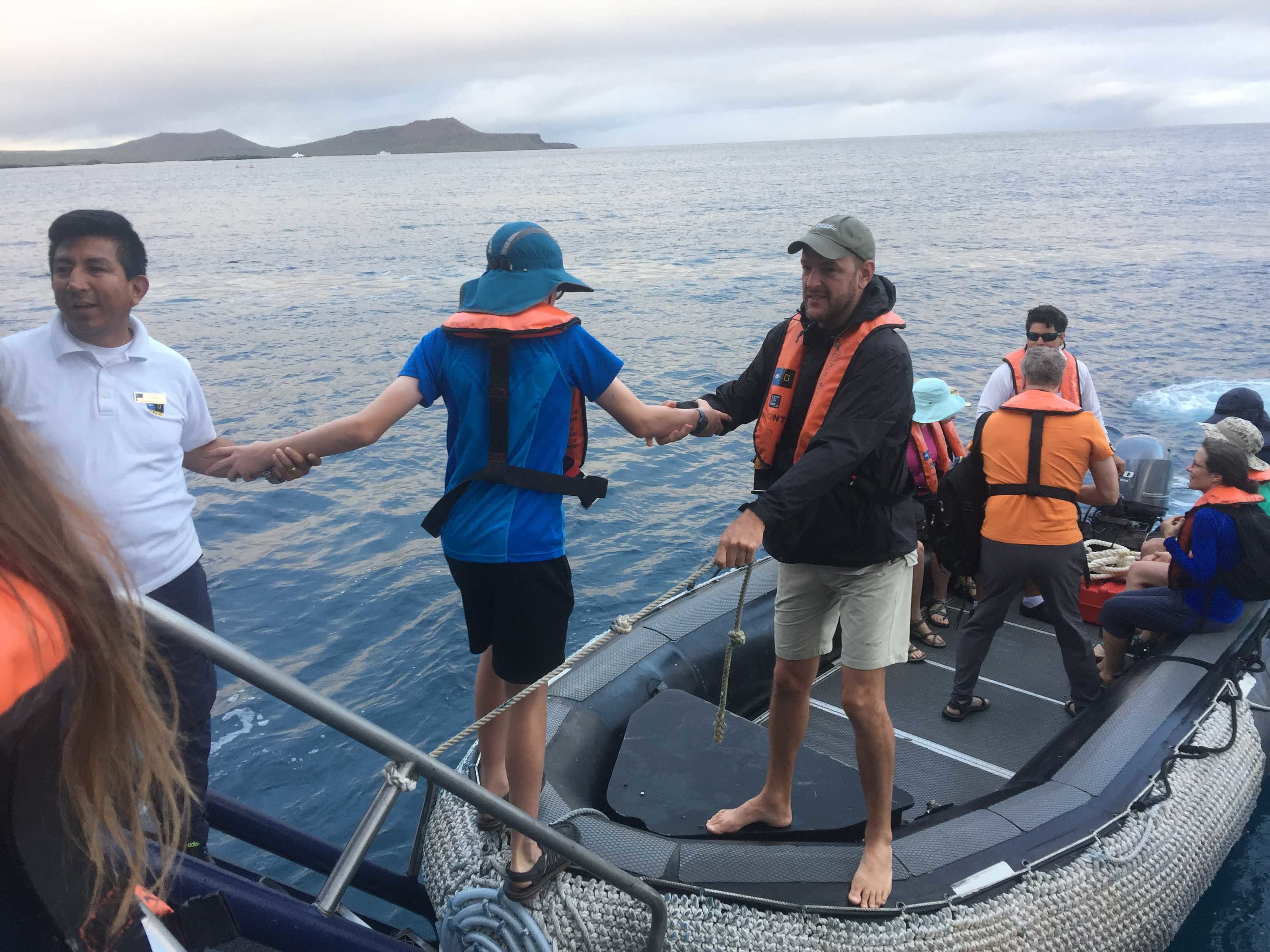 Today, National Geographic Endeavour II visited Cerro Dragon, located on the north part of Santa Cruz Island. We found one of the largest colonies of land iguanas. During our hike, we spotted the iguanas all around the trail. Some basked on the vegetation, and others were active. We saw the zigzag head movement they use to protect their territory and impress females. An Ecuadorian buffet lunch was set up in the dining room. We started with the traditional ceviche and ended with tres leches for dessert! We enjoyed snorkeling and Zodiac rides. We observed wildlife all over the place, including spotted eagle rays, sharks, blue-footed boobies, great blue herons, marine iguanas, and hundreds of other animals. They all reminded us why the Galapagos is so special.