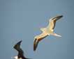 At the beach, there is a very small cliff made of ashes and pebbles from volcanic material; on the top of it, we found many blue-footed boobies nesting and having their rituals to fall in love. It is a very interesting court-ship to watch, in which they show their feet each other and spread their wing off as part of the ceremony. Pelicans also were fishing around, while some frigates very high into the sky were waiting to steal any piece of food. The morning was very productive and then we went back on board to have breakfast. Later we went to explore Champion Islet, place and home of the last dozens of Floreana mocking birds that still surviving in this small landmass; from the main island of Floreana they extinguished many decades ago by the introduction of feral goats that nowadays are not there anymore. To see these creatures is a very hard task but this time we were lucky and we spotted two of them. After our zodiac ride we jumped to the warm turquoise water to snorkel with sharks, sea lions, moray eels, a hundreds of multicolored tropical fishes; the experience of swimming with sea lions is unique; they are so friendly and playful with our intrepid guests that are astonished of having this National Geographic moment at the ocean.