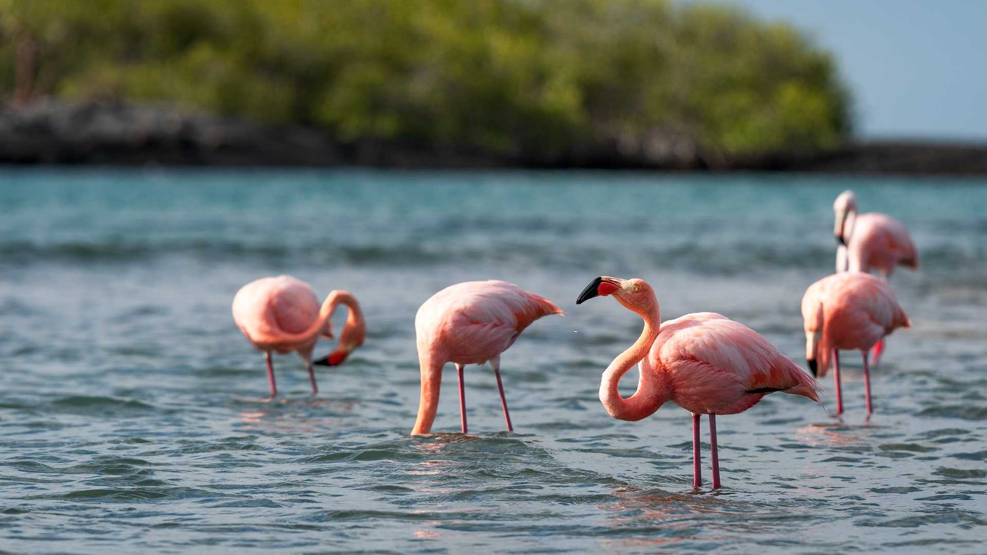It’s our first full day of expedition on National Geographic Islander . We started our day with a morning hike on North Seymour, which is one of the best islands to observe nesting colonies of frigatebirds, blue-footed boobies, swallow-tailed gulls, and many more species of marine birds. Later in the morning, National Geographic Islander navigated to the beautiful Rabida Island, where we enjoyed an amazing afternoon. Guests swam and snorkeled with sea lions and many different species of reef fish off the red sand beach. We walked to a pond located behind the beach and observed flamingos nesting after more than 20 years on this island.