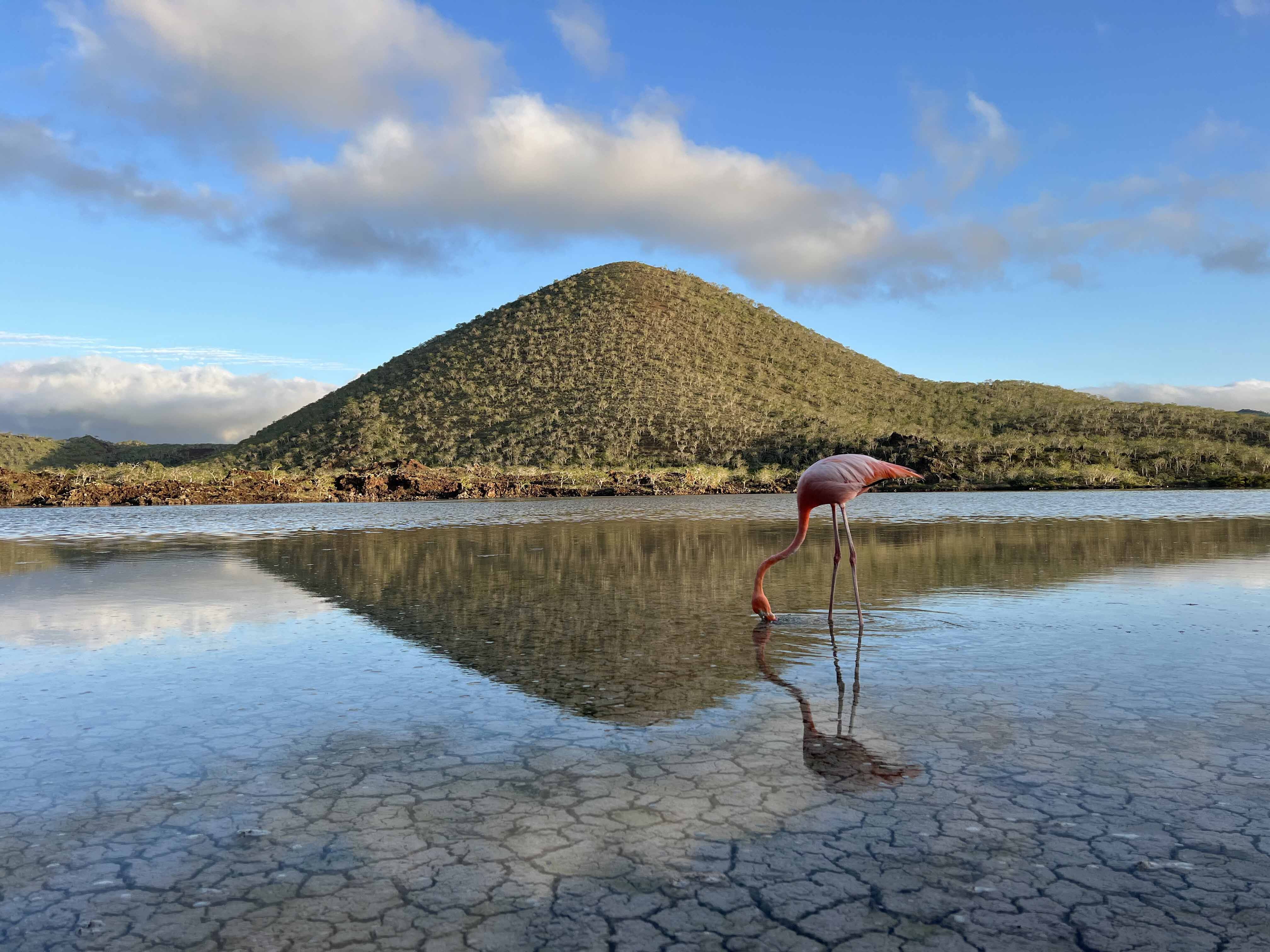 After a delicious breakfast, we headed to the water on Champion Island to explore the underwater world. During the afternoon, we visited Punta Cormorant. We spent time on a green sandy beach and observed bright pink flamingos.