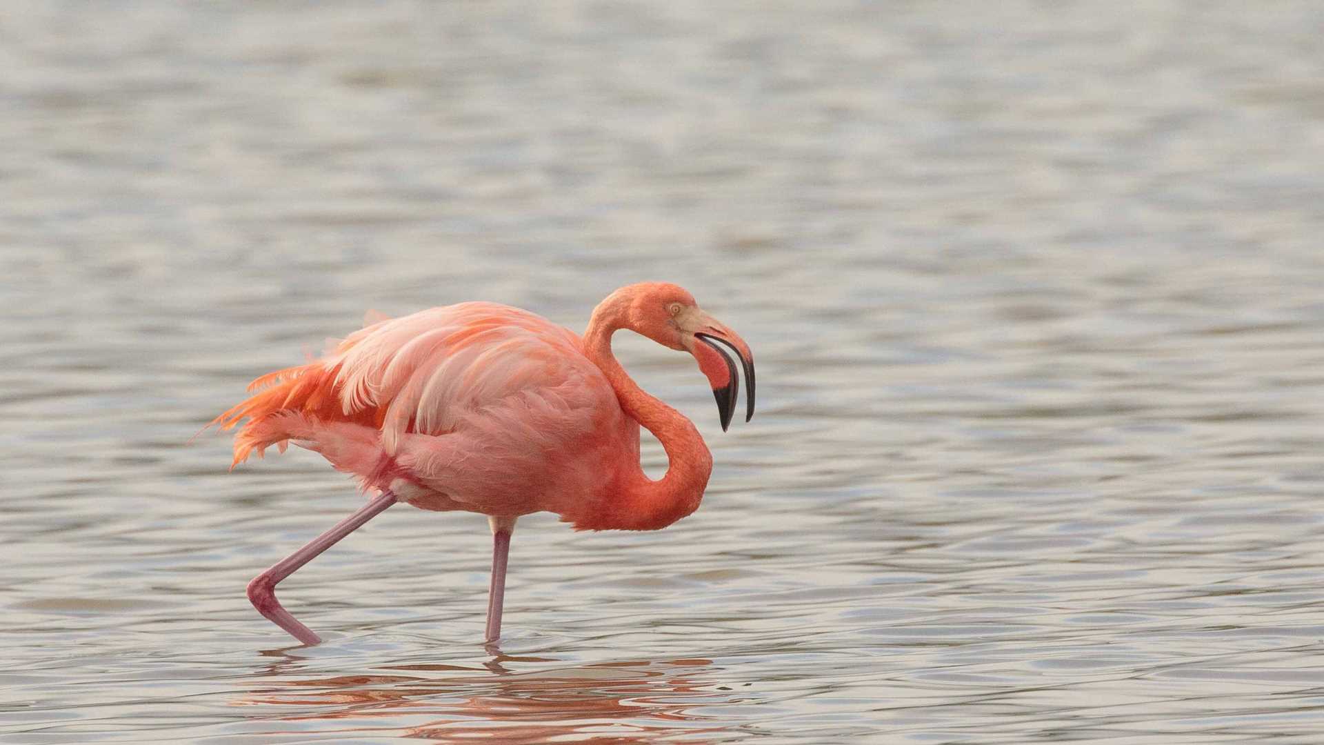 We started our day with a pre-breakfast outing to explore a visitor site known as Cormorant Point. Soon after our arrival, we encountered a large colony of American flamingos. We observed around 30 flamingos feeding in the shallows of a brackish water lagoon. Brine shrimp and other small crustaceans serve as the main source of food for the rare flamingos.
